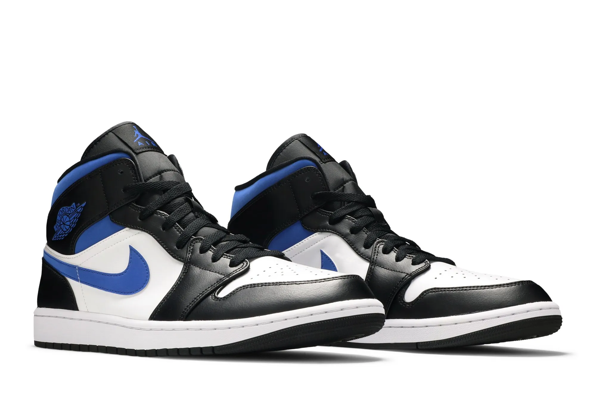 The Air Jordan 1 Mid ‘Racer Blue’ applies OG-inspired color blocking to a mid-top variation of Peter Moore’s original 1985 design. The upper comprises a white leather base with contrasting black leather overlays and a suede collar in royal blue. The latter hue is repeated on the sneaker’s branding elements, which include a leather Swoosh, a classic Wings logo on the lateral collar, and a Jumpman icon on the woven tongue tag. Lightweight cushioning is provided by an encapsulated Air-sole unit nestled in the heel of the rubber cupsole.
