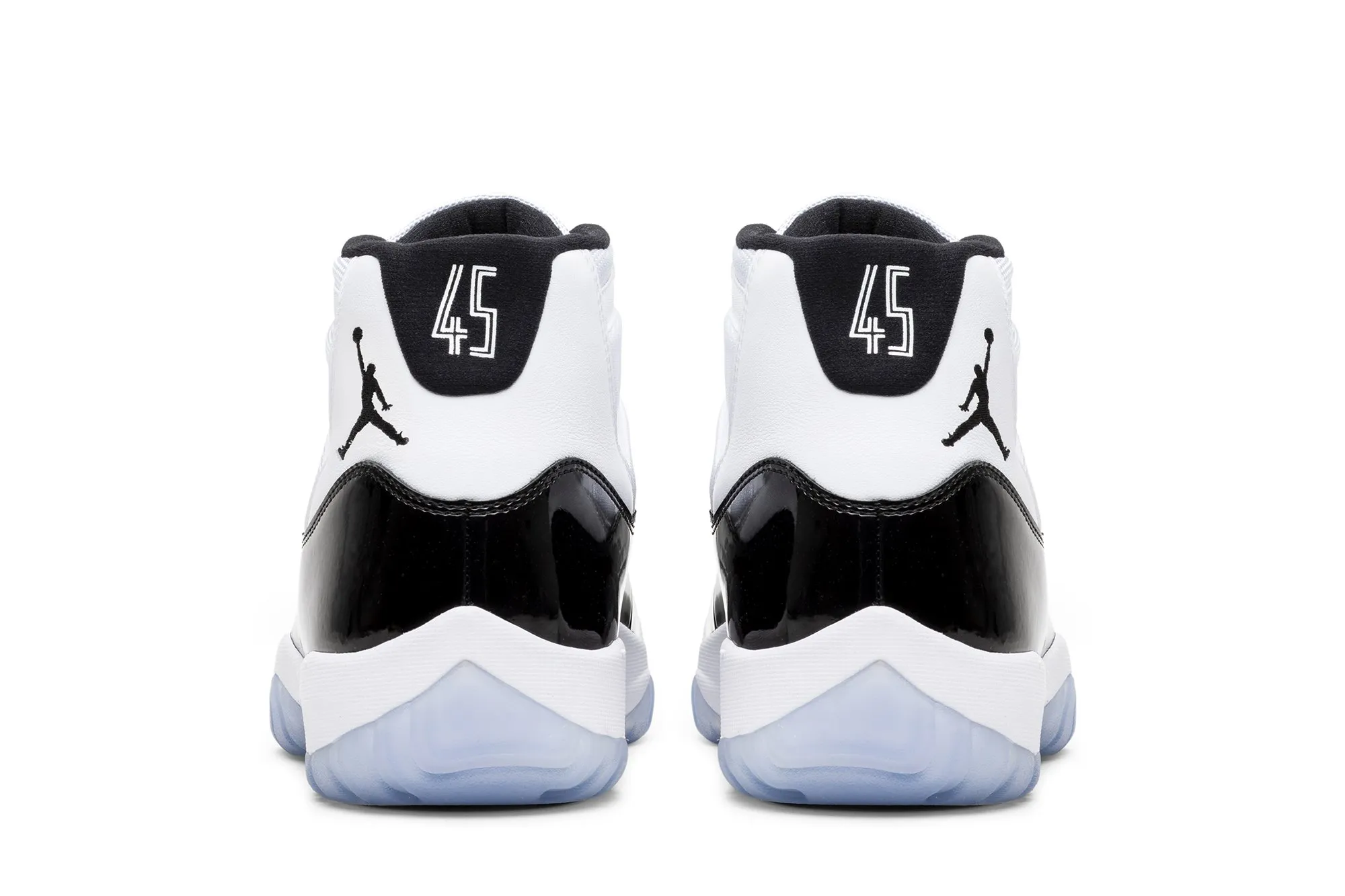 The 2018 edition of the Air Jordan 11 Retro ‘Concord’ features ’45’ stamped on the black heel tab-a nod to the jersey number that Michael Jordan wore upon his return to basketball following his first retirement. The rest of the build keeps the shoe’s signature details intact, including a white ballistic mesh upper, black patent leather overlays and an icy translucent outsole underfoot.