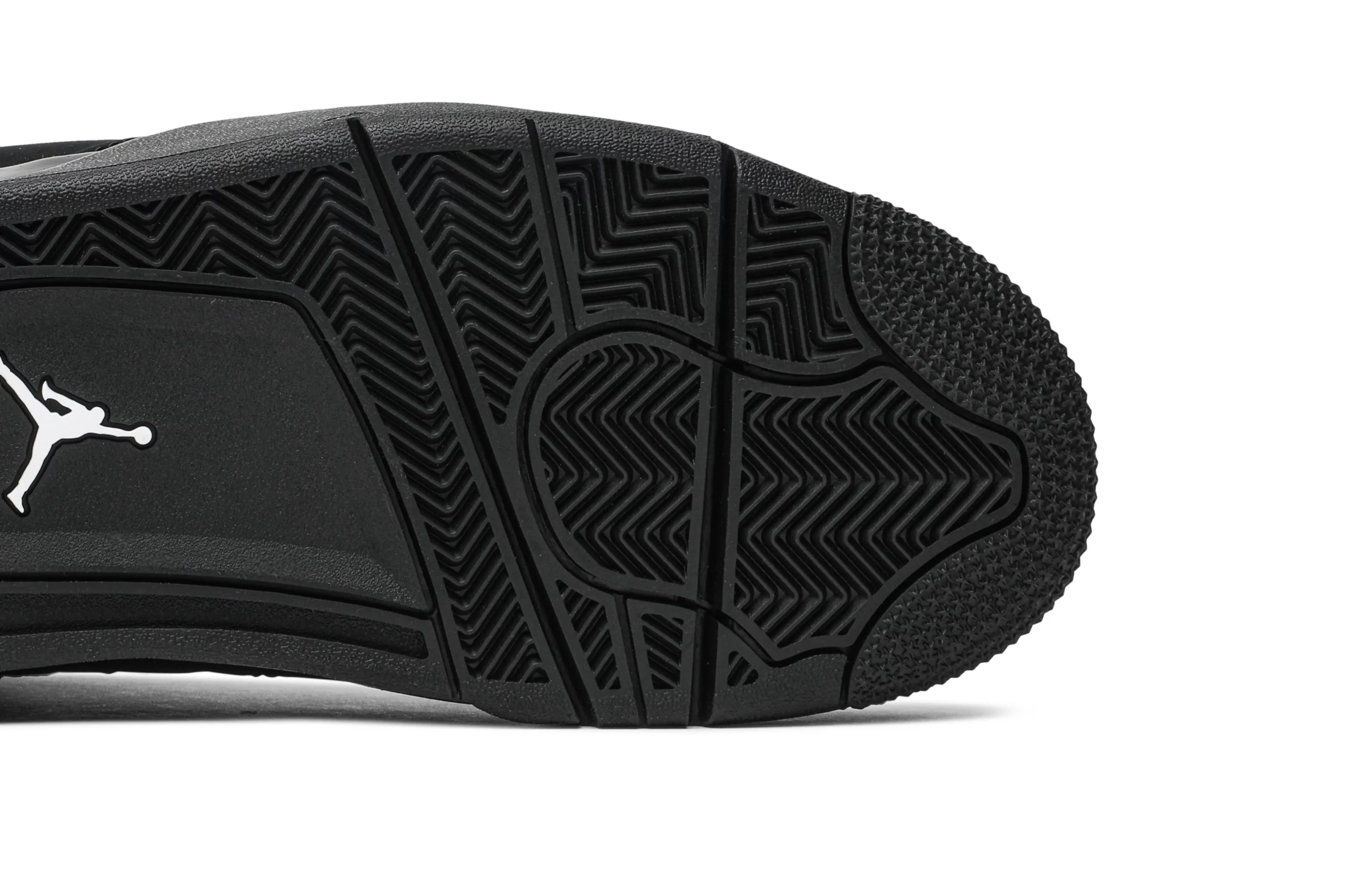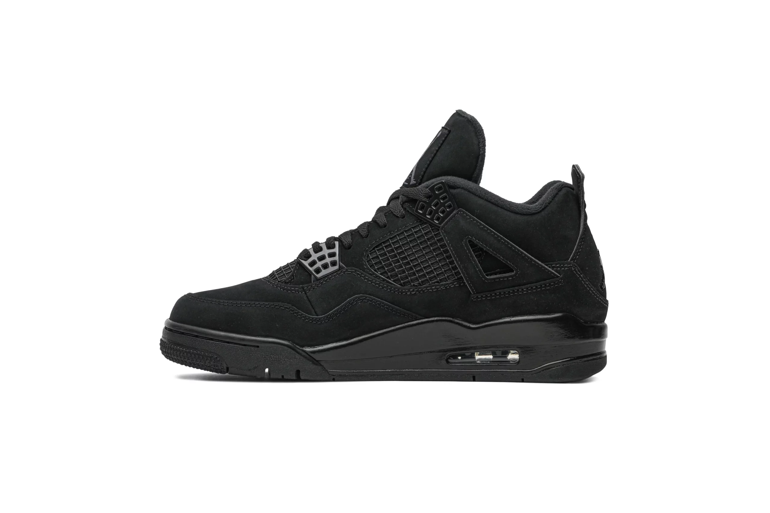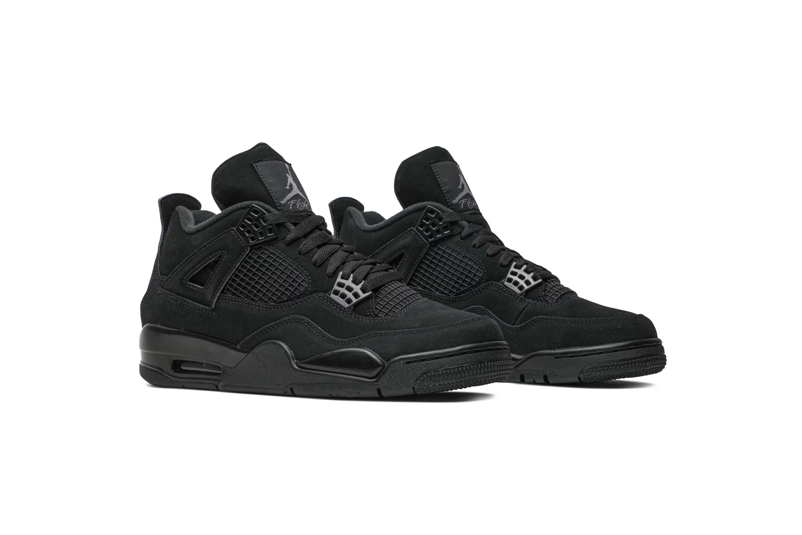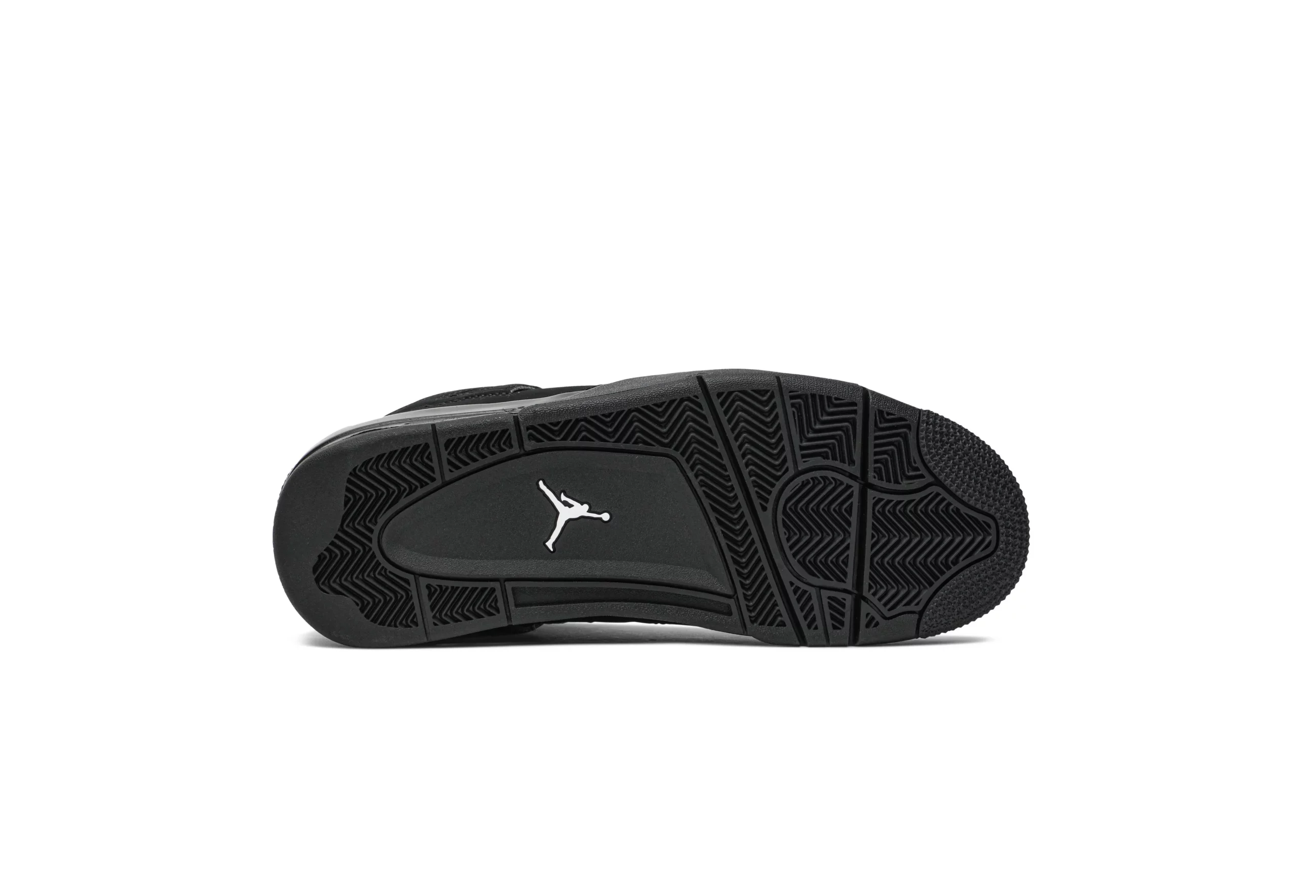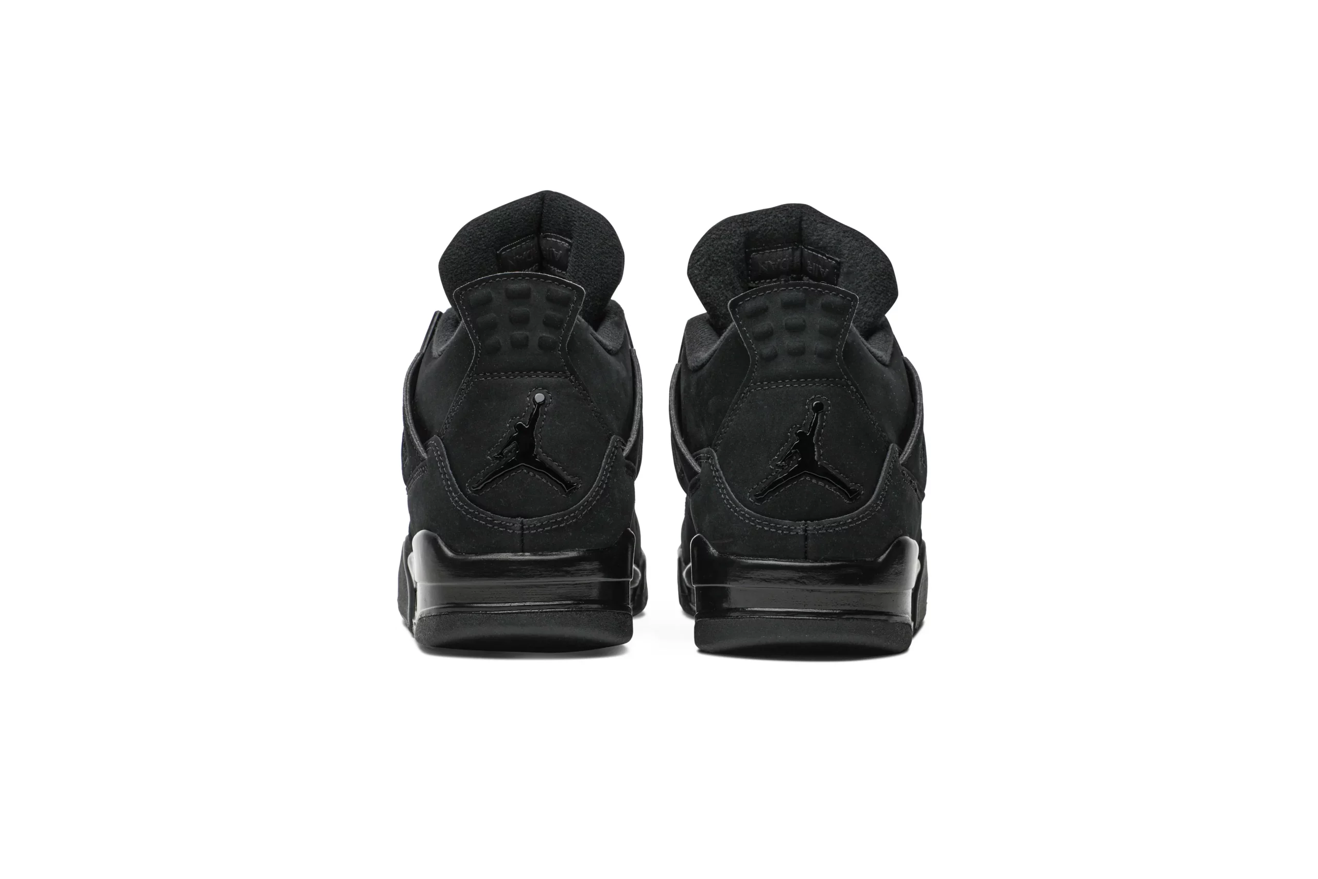 The 2020 edition of the Air Jordan 4 Retro 'Black Cat' brings back the all-black colorway of the classic silhouette, one that draws inspiration from one of Michael Jordans various nicknames. Like the original 2006 release, this pair makes use of a monochromatic black suede upper with a matching black midsole. Jumpman branding on the woven tongue tag is rendered in Light Graphite, representing the sneakers only contrasting design element.