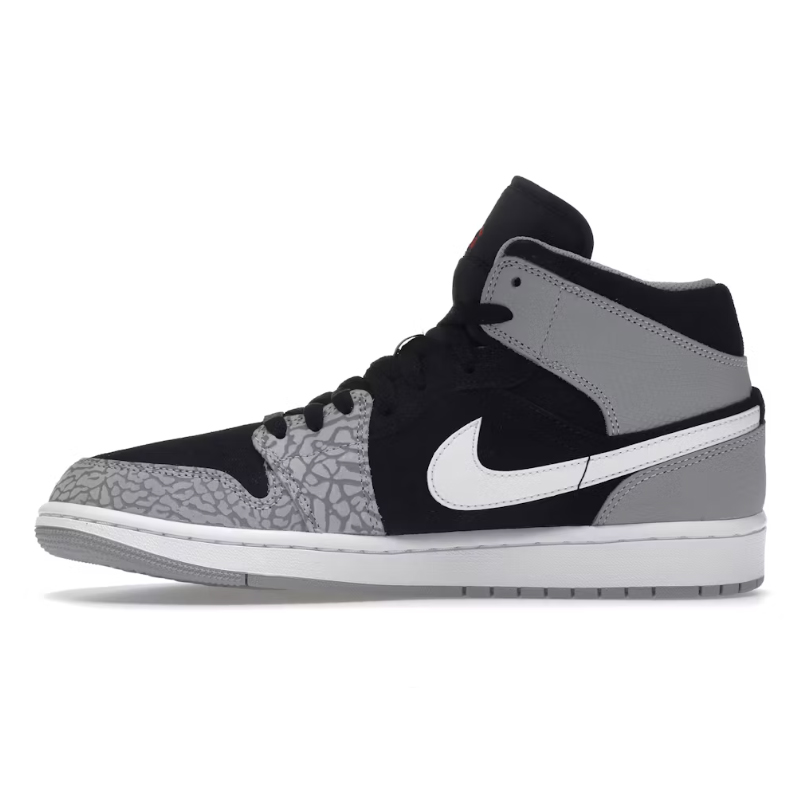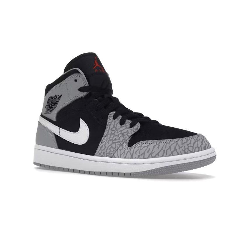 Introducing the Air Jordan 1 Mid SE Elephant Toe – a bold design with the same iconic look as the legendary Black Cement Air Jordan 3 in an elevated mid-top silhouette. Crafted from premium suede/nubuck materials, this sneaker features a striking gray elephant textured pattern overlay on the toe. The leather Swooshes and rubber midsoles are white, while the outsoles wrap around your foot like a glove with their soft gray leather. The signature Jumpman logo appears in eye-catching red on the tongue of the shoe. With its timeless aesthetic and classic details, this footwear is sure to turn heads while ensuring comfort and maximum breathability no matter how hard you hit it or wherever you go. Whether you're a collector or a fan of all-around streetwear, this edition of the iconic Air Jordan 1 is sure to be your new favorite pair.