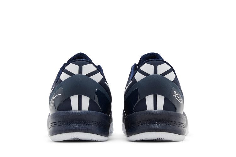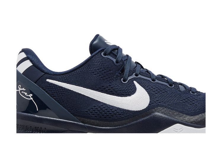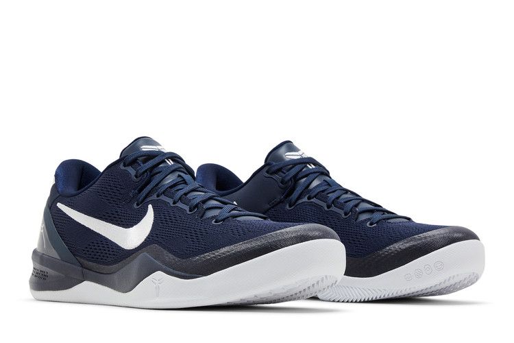 The Nike Kobe 8 Protro 'College Navy' is crafted from navy engineered mesh with contrasting white accents. They include an embroidered Swoosh and Kobe Bryant's sheath logo on the tongue and back heel. In terms of performance, a drop-in React foam midsole offers lightweight cushioning with every step. An exposed carbon fiber shank plate provides midfoot stability, while a herringbone-pattern rubber outsole yields stop-and-go traction.