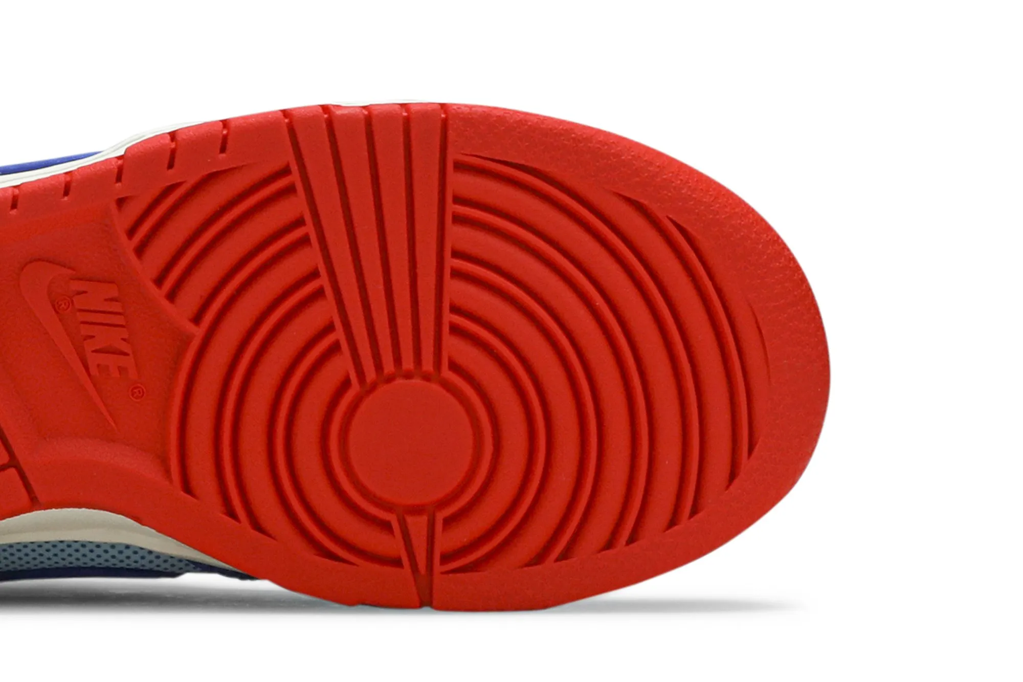 Celebrating Chinese New Year, the Nike women’s Dunk Low ‘Firecracker’ features a colorful exterior that reveals hidden layers, all based around the sneaker’s explosive theme. The sneaker’s mismatched tongue tags act as warning labels, while the cartoon graphics on the royal blue overlays replicate the look of firecracker wrapping paper. The entirety of the sneaker’s outer layer can be worn away to reveal bright red coloring representing the firecracker casing. Underneath the red surface, a tertiary layer is rendered in black and grey, denoting the gunpowder residue from a spent firecracker.